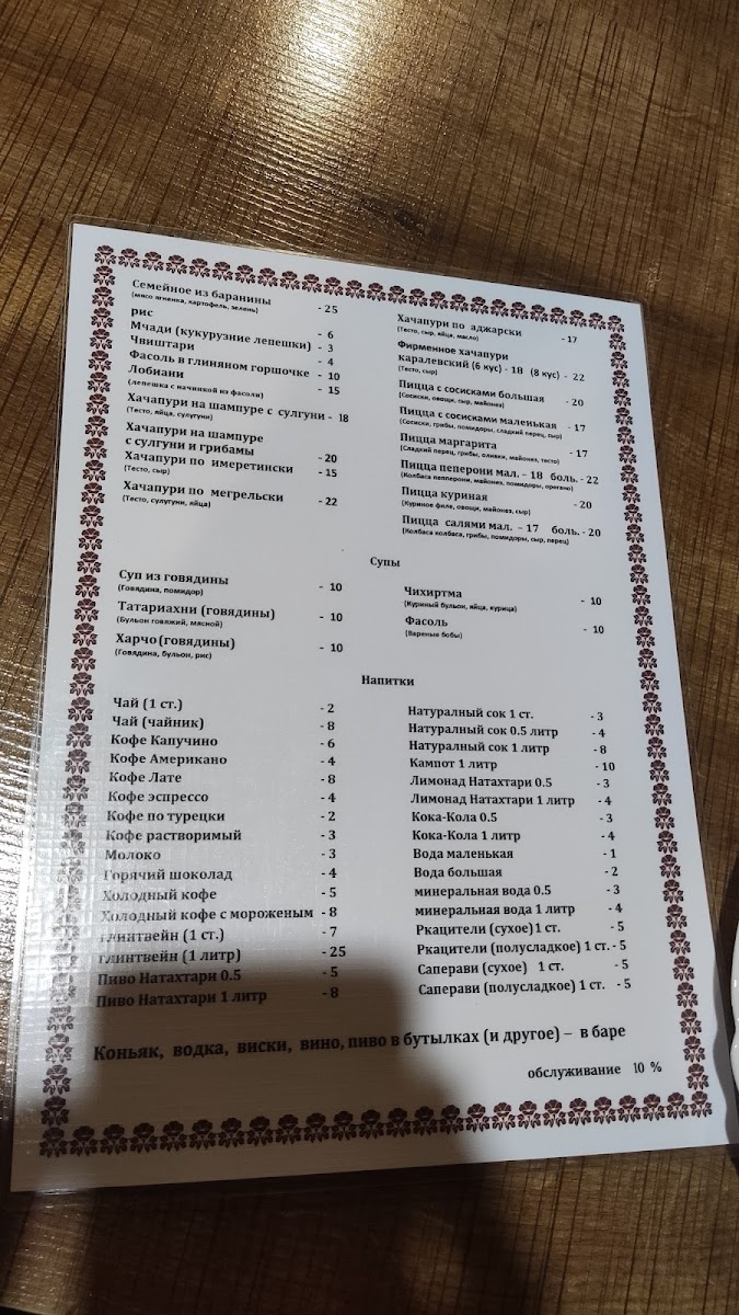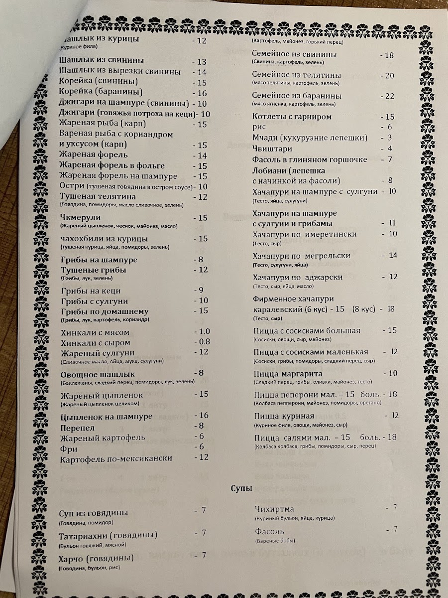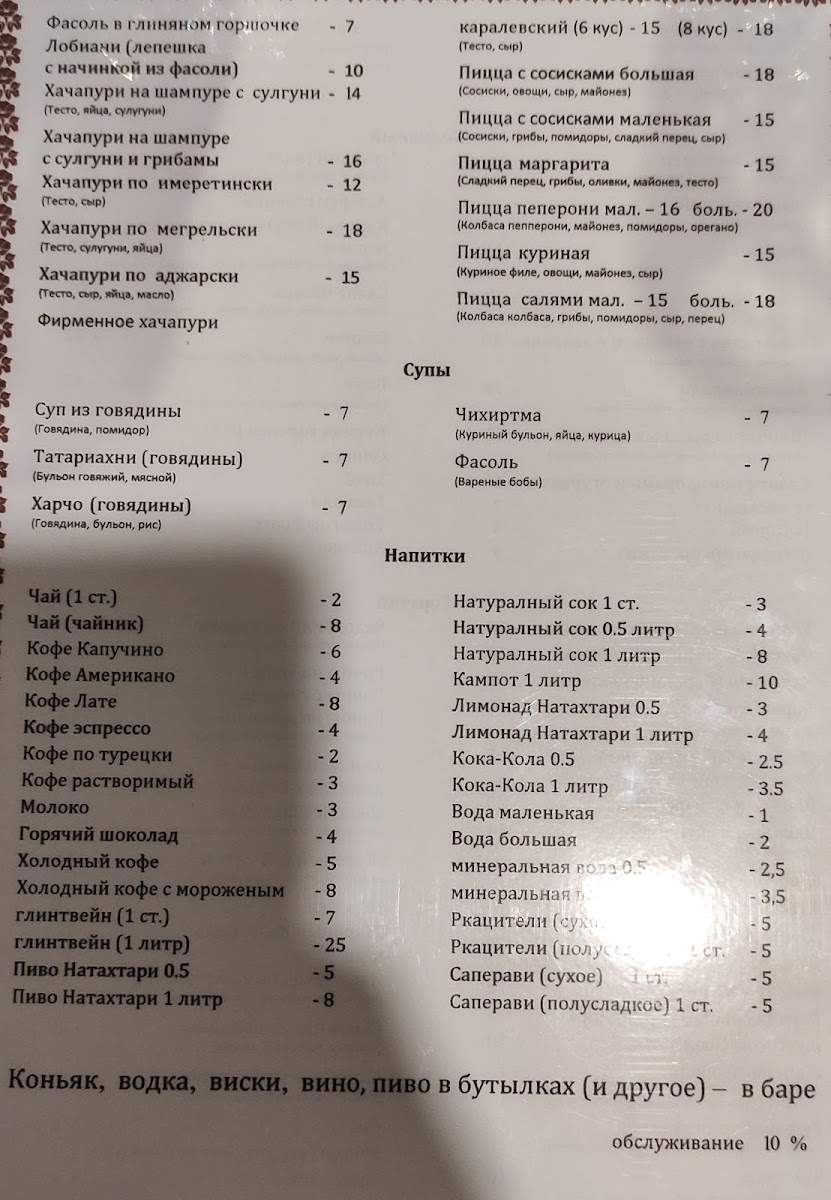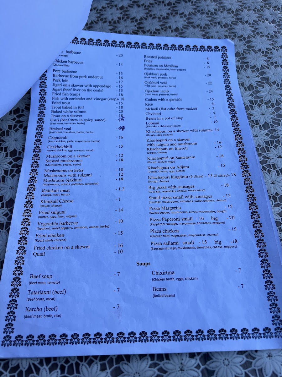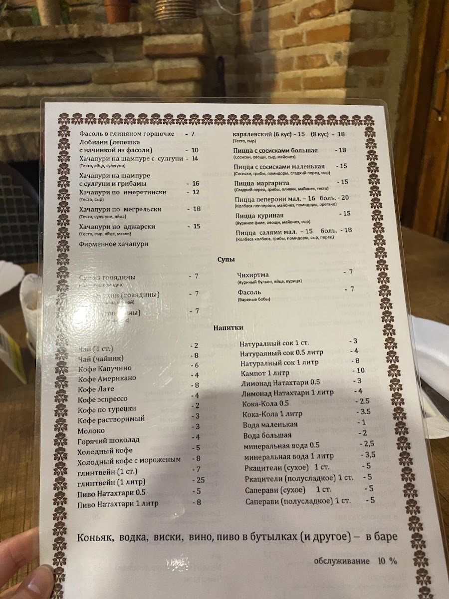For those craving something warm and comforting, the Kinkali and Beef Soup delivers a rich and hearty experience, while the Fasoli provides a satisfying vegetarian option with beans in a savory sauce. The Margherita Pizza adds an international touch to the menu, offering a familiar yet delicious Italian classic.